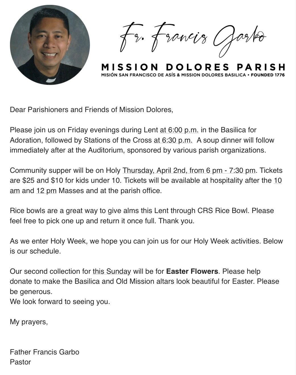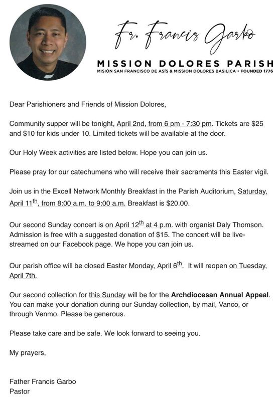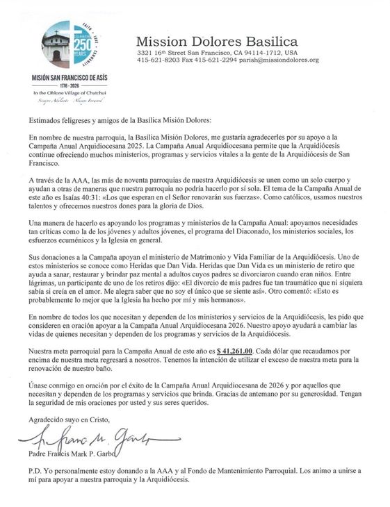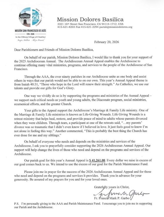 True to its origins, the Basilica Parish of Mission Dolores reflects the remarkable diversity and vibrancy of modern San Francisco. Located at the crossroads of the City's Mission District, Castro District, the Lower Haight, Noe Valley, and Upper Market Street neighborhoods, Mission Dolores parishioners come from an enormous array of cultures, places, and backgrounds to worship together.