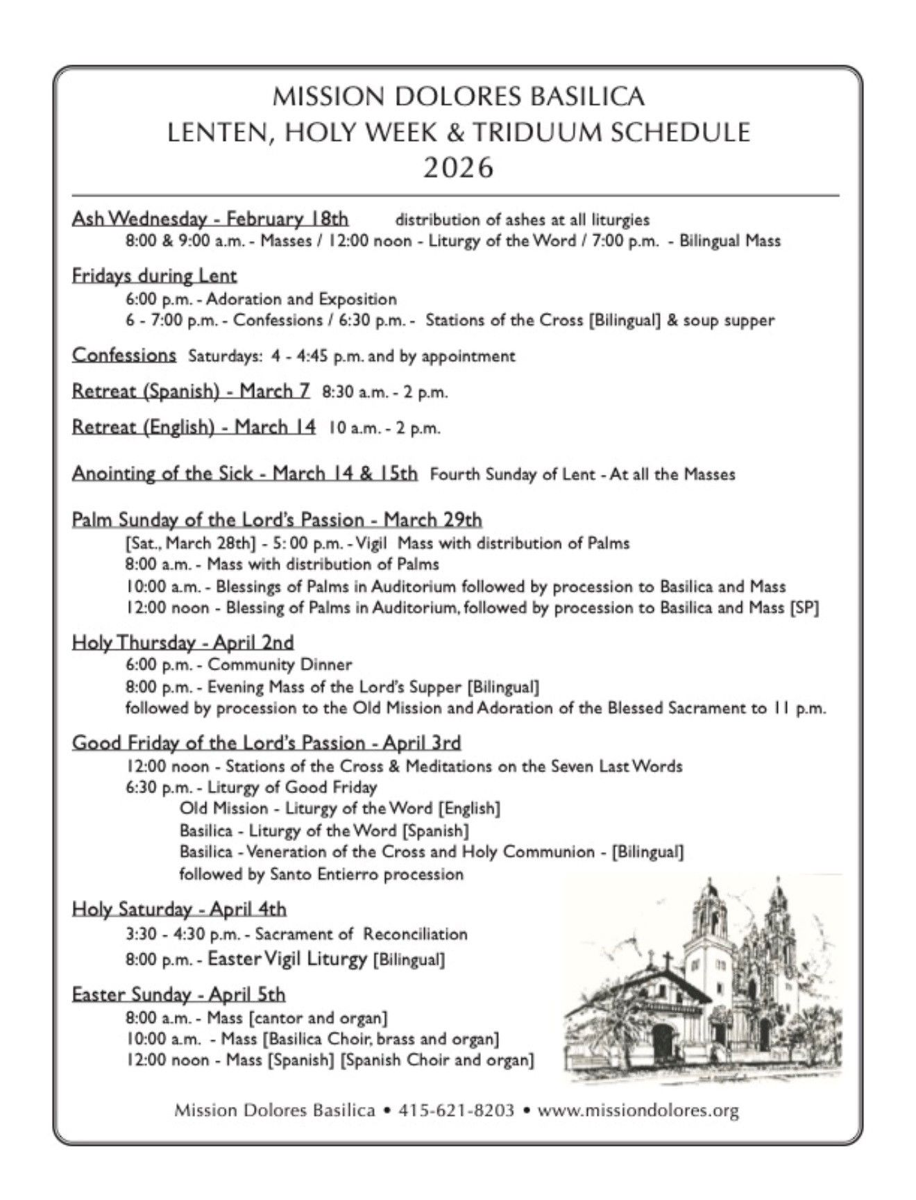 Beginning this weekend, Sunday, February 8th. Our Museum Curator, Ohlone Indian, Andrew “Andy” Galvan, will write about the Mission’s upcoming 250th Anniversary. Andy will discuss the history of the Mission, including details of his Ohlone ancestors who built the Mission. He will also write about the Franciscan Missionaries, especially Saint Junipero Serra, whose canonization process Andy worked on from 1978 until its completion in 2015. The stories of Spanish Colonizers Captain Juan Bautista de Anza and Lieutenant Jose Joaquin Moraga will be detailed. Also featured will be details of our Patron, Saint Francis of Assisi. St Francis died 800 years ago in 1226, and our Mission’s Anniversary will include commemorations of everyone’s favorite Saint.