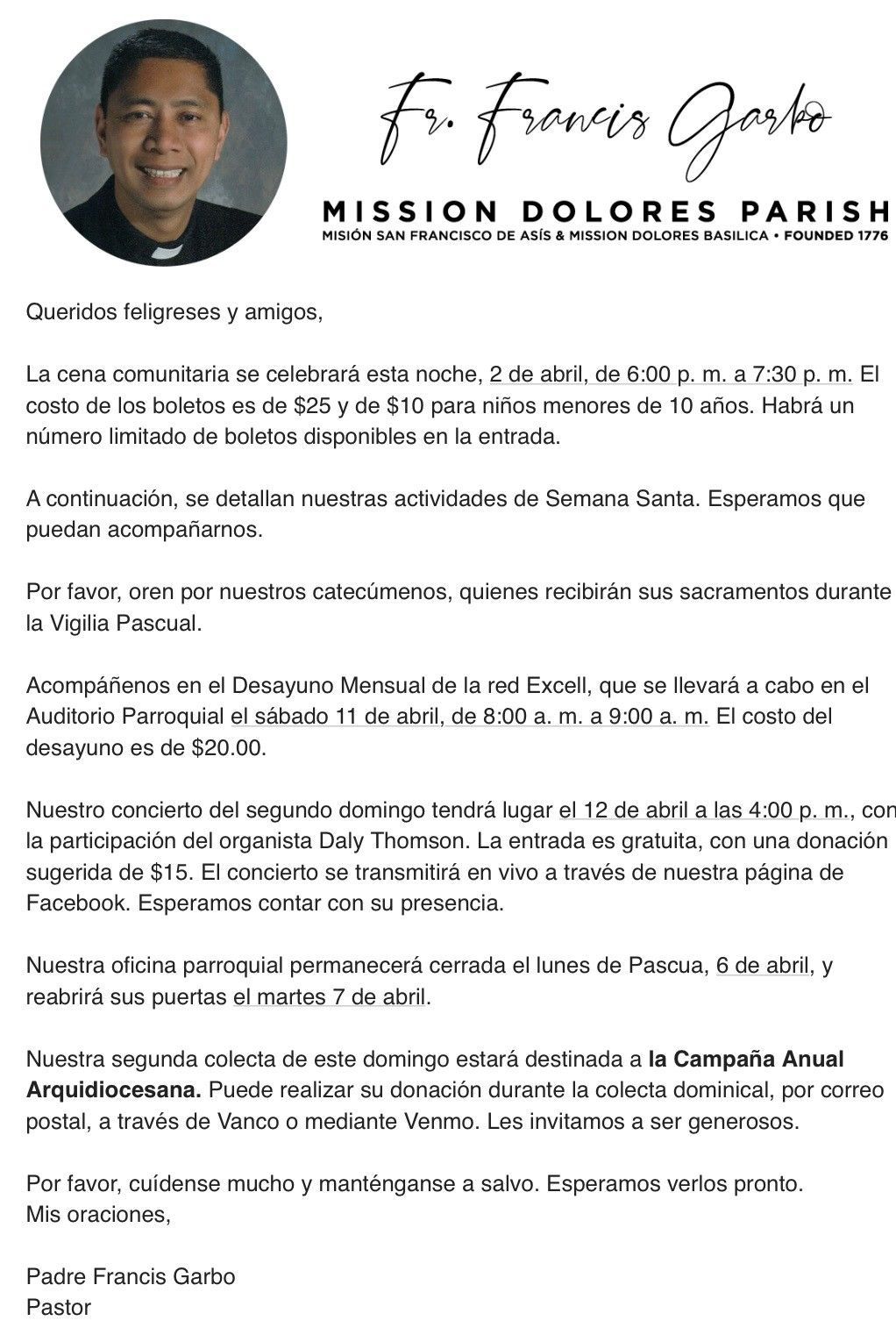 The Gift Shop/Mission will be closed on Good Friday, April 3rd, and Easter Sunday, April 5th. We will be open Holy Saturday, April 4th, from 10 am –