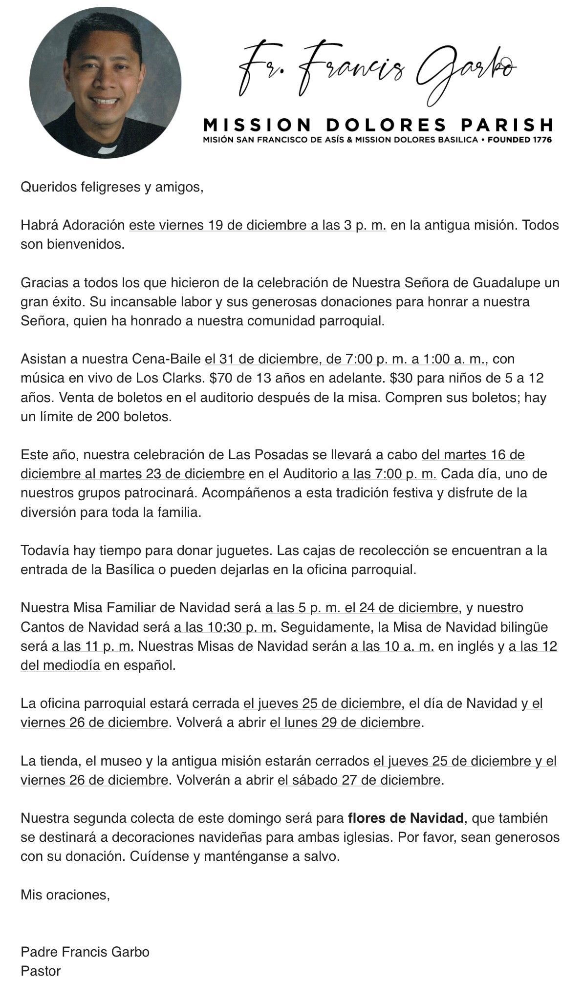 La tienda de regalos, el museo y la Antigua Misión estarán cerrados el jueves 25 y el viernes 26 de diciembre. Reabrirán el sábado 27 de diciembre a las 10:00 a. m. La tienda de regalos, el museo y la Antigua Misión estarán cerrados también el jueves 1 y el viernes 2 de enero. Reabrirán el sábado 3 de enero a las 10:00 a. m.